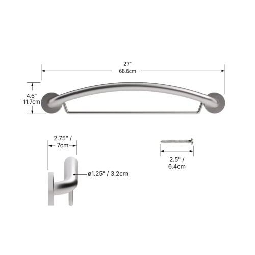 Built to meet ADA compliance standards (ADA 609.2, 609.3, and 609.8), this grab bar features a comfortable 1.25″ diameter grip, 1.5″ wall clearance, and is engineered to support up to 500 lbs when installed properly. It’s ideal for those prioritizing accessibility without compromising on design.