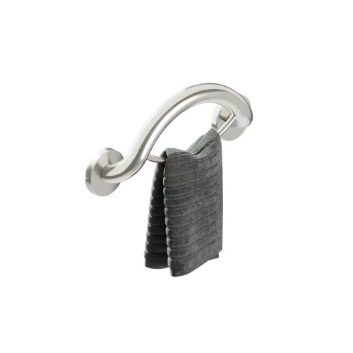 The curved design offers an attractive, modern solution for organizing and displaying bathroom towels, while providing a comfortable hand grip that supports over 500lbs.